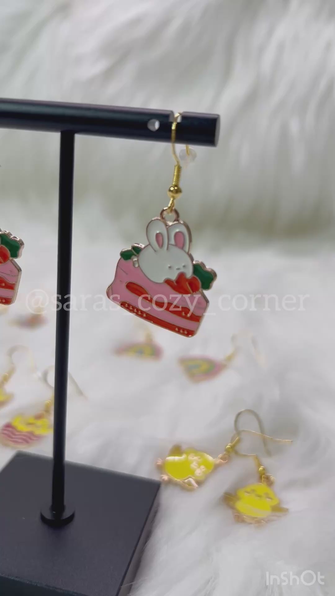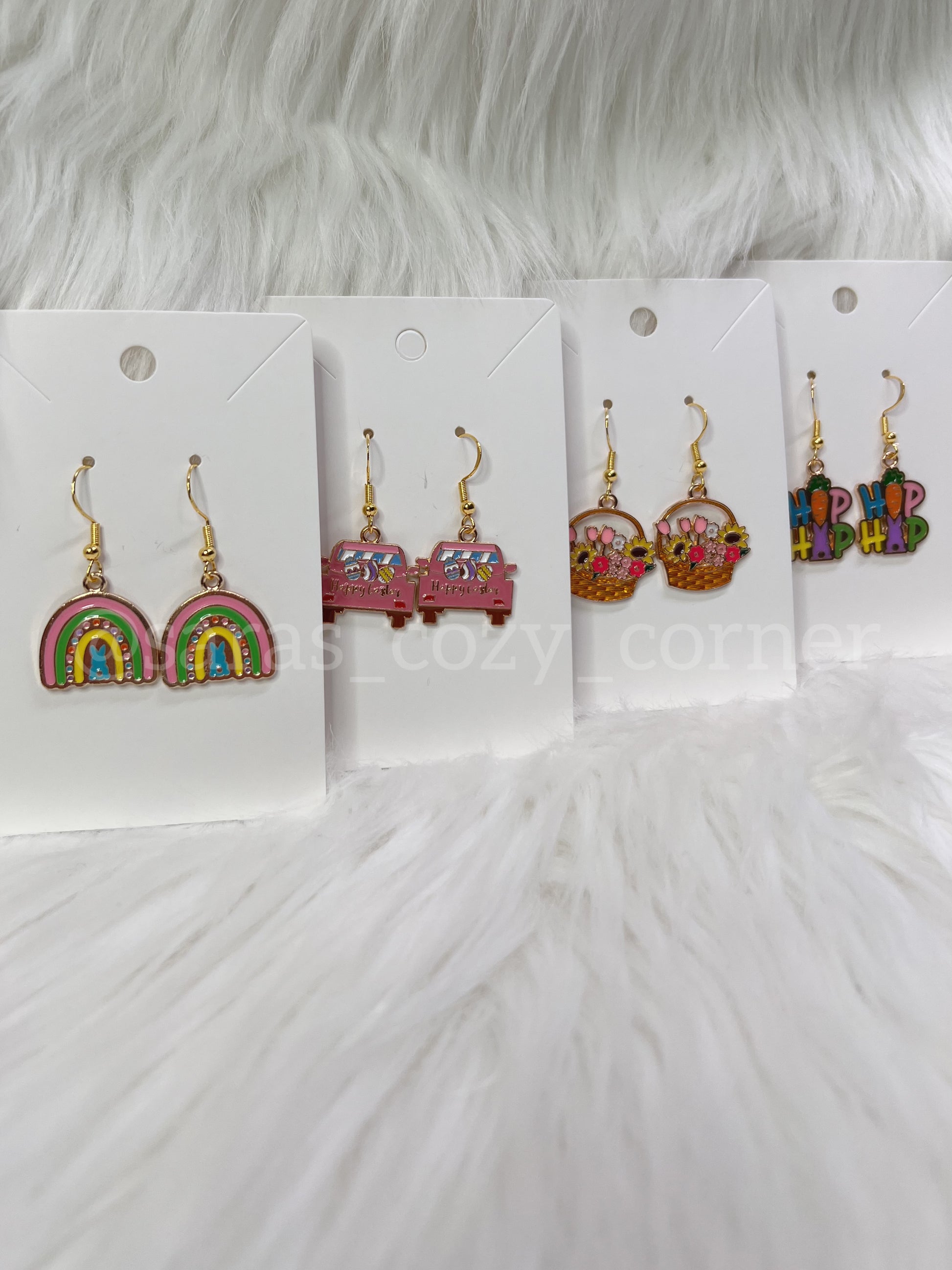 These Spring Dangles are full of cheerful Easter details from sweet bunnies and chicks to colorful eggs, carrots, flowers, and rainbows. Each pair is lightweight, playful, and designed to bring a little extra joy to your spring outfits.